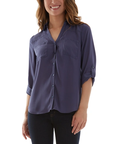 Juniors' 3/4-sleeve Printed Button-front Blouse In Blue