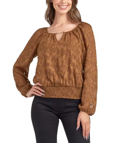 Juniors' Solid Burnout Long Sleeve Top In Brown