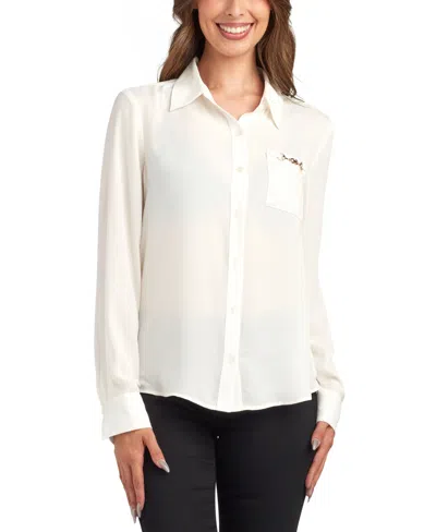 Juniors' Solid Dobby Long Sleeve Shirt In White