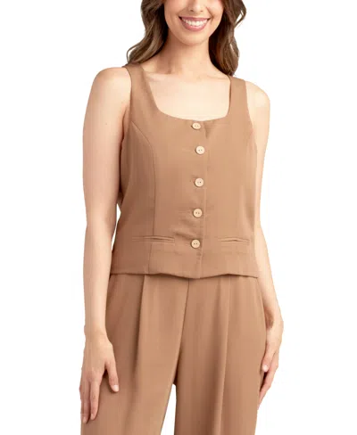 Juniors' Solid Heavy Crepe Button-front Vest In Brown