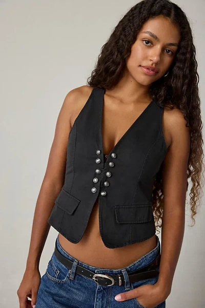 Taryn Military Slim Vest Top Jacket In Black, Women's At Urban Outfitters