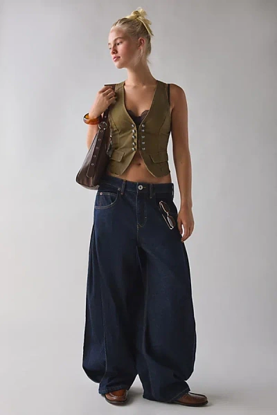 Jaya Studded Eyelet Cutout Baggy Boyfriend Jean In Tinted Denim, Women's At Urban Outfitters In Blue