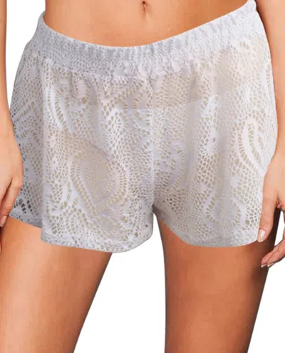 Heart Crochet Cover Up Short In White In Burgundy