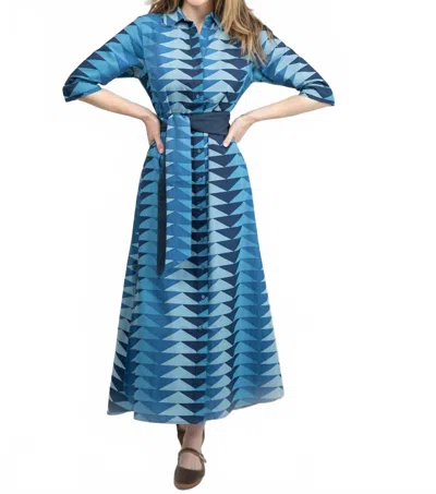 Eloise Shirt Maxi Dress In Fall Blue Bagru Triangle