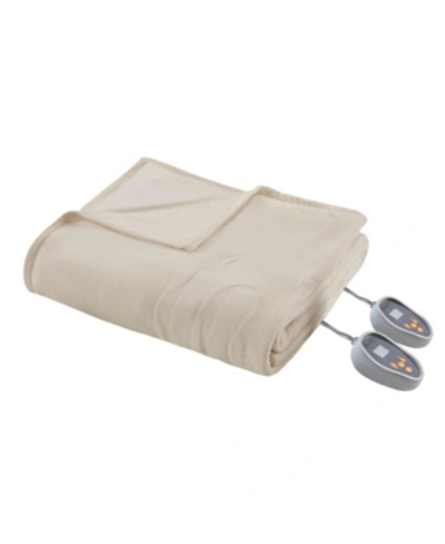 Knit Micro-fleece Queen Electric Blanket Bedding In Beige