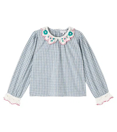Kids' Rhea Checked Cotton And Linen Blouse In Blue