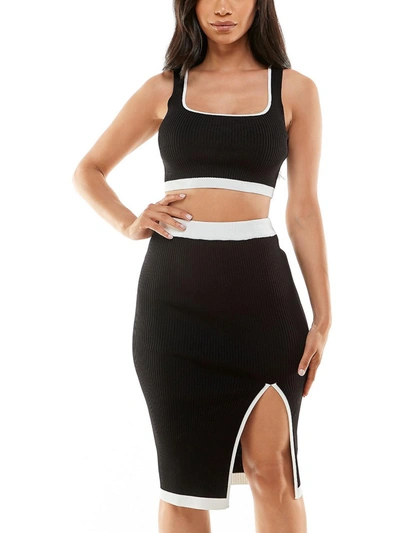 Lurex Rib Knit Long Sleeve Top & Skirt Set In Burgundy