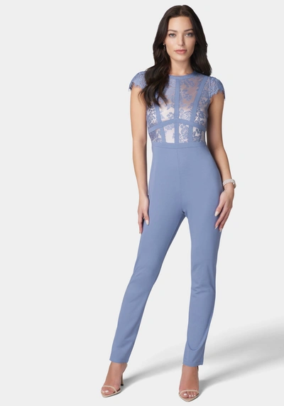 Caged Lace Catsuit In Chambray Blue