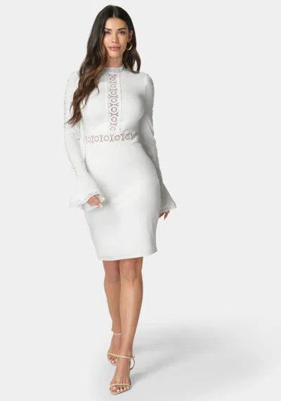 Foiled Bandage Plunge Neck Midi Dress In Mocha