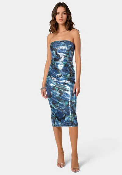 Sequin Strapless Midi Dress In Midnight Rose