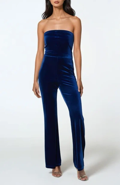 Strapless Velvet Jumpsuit In Sapphire