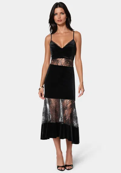 Velvet Lace Midi Dress In Black