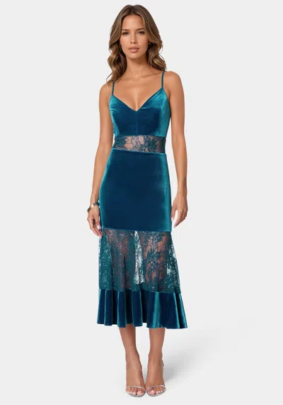 Velvet Lace Midi Dress In Crystal Teal