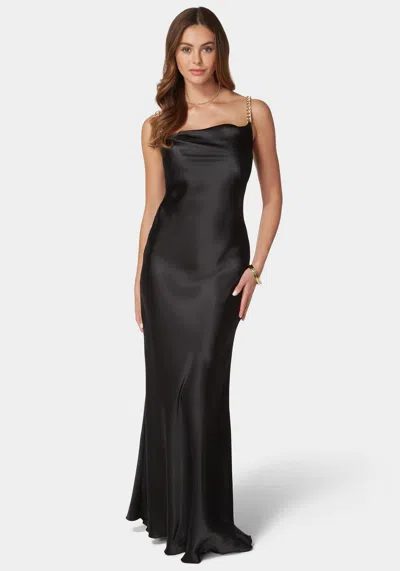 X Ciara Satin Maxi With Gold Chain Straps In Black
