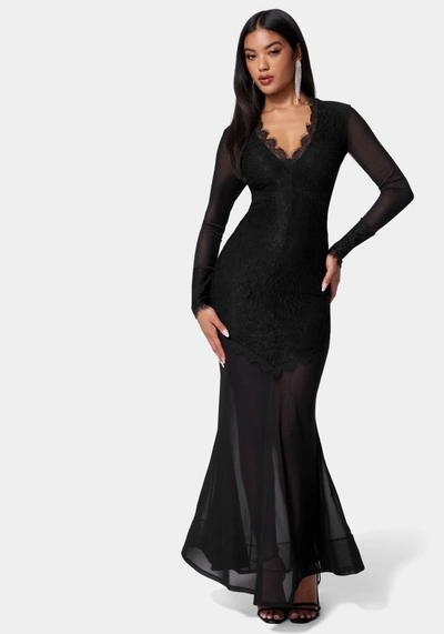 Scallop Lace Illusion Mermaid Dress In Jet Black