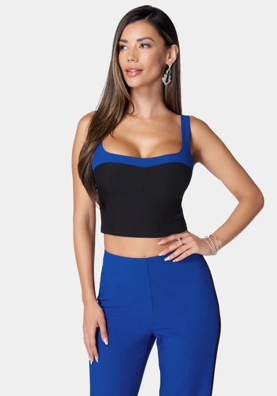 Tailored Contrast Woven Twill Bustier In Galactic Cobalt,black