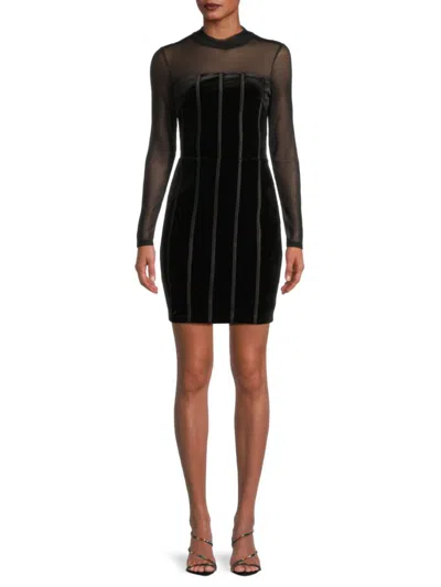 Diamante Crystal Mesh Mini Dress In Jet Black