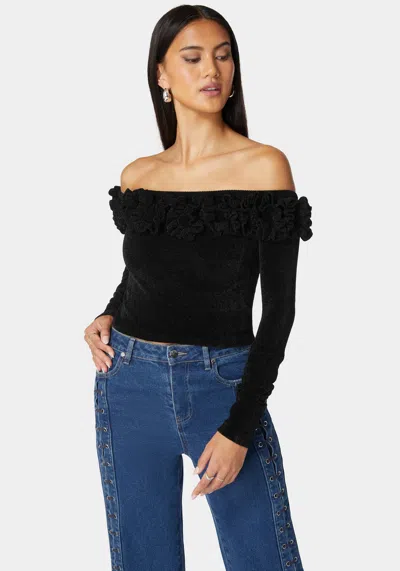 Ruched Cut Out Cold Shoulder Knit Top In Black