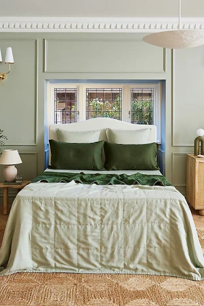 Reversible Linen Quilt In Sage/olive At Urban Outfitters