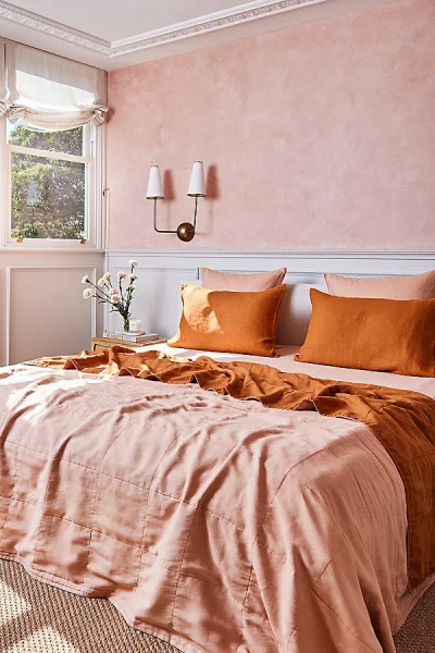 Reversible Linen Quilt In Terracotta/rust At Urban Outfitters