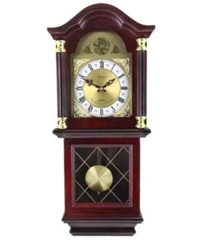 Clock Collection 22" Wall Clock With Pendulum And Chimes In Mahogany Cherry Oak