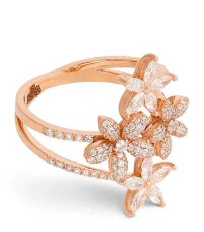 Yellow Gold, Diamond And Mixed Stone Honeycomb Ring In Rose Gold