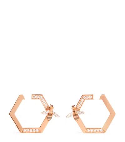 Rose Gold And Diamond Honeycomb Bee Earrings