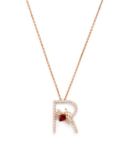 Rose Gold, Diamond And Garnet Letter 'r' Necklace