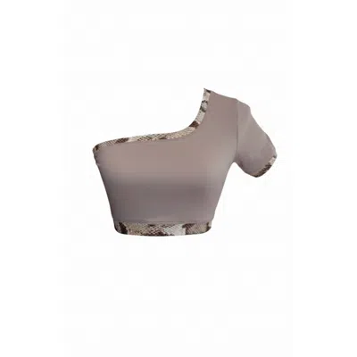 Women's Crop Top Beige Snake In Brown