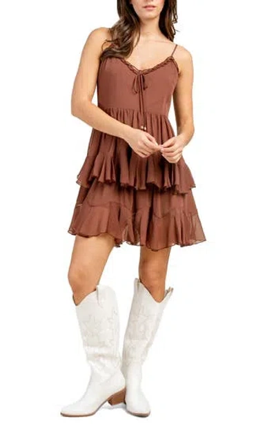 Yoryu Chiffon Tiered Minidress In Brown