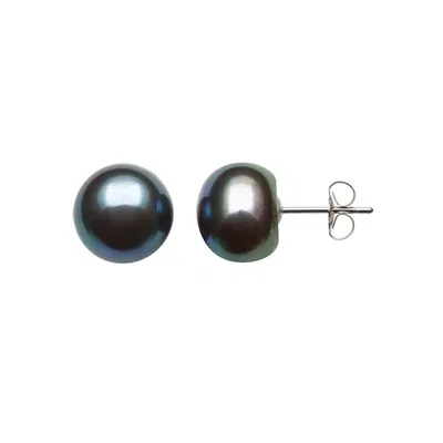 10-10.5mm Black Freshwater Button Pearl Stud Earrings In Sterling Silver Jewelry For Women