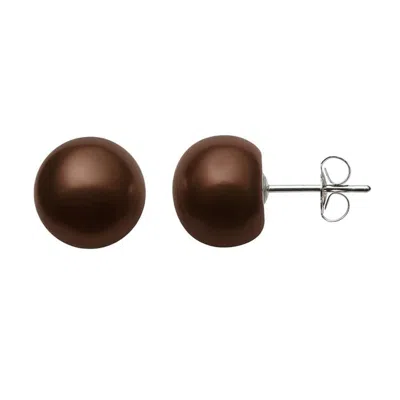9-9.5mm Brown Freshwater Button Pearl Stud Earrings In Sterling Silver Jewelry For Women