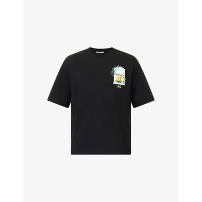 Mens Black Valdisere Graphic-print Cotton T-shirt