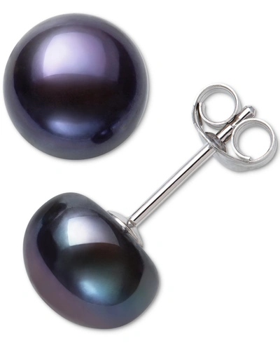 Cultured Freshwater Button Pearl (8-9mm) Stud Earrings In Black