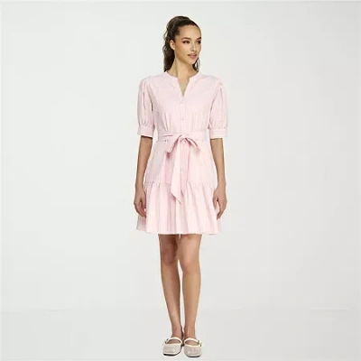 Womens Elbow Sleeve Striped Shirt Dress In Pink