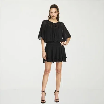 Womens Short Sleeve Blouson Dress In Black