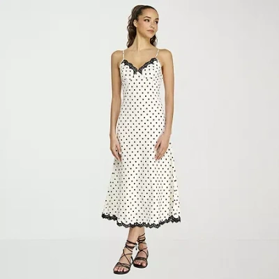 Womens Sleeveless Floral Midi Slip Dress In White