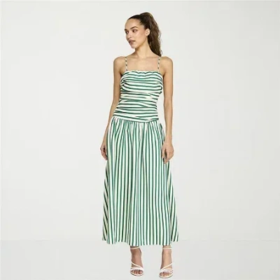 Womens Sleeveless Striped Drop Waist Dress In Green