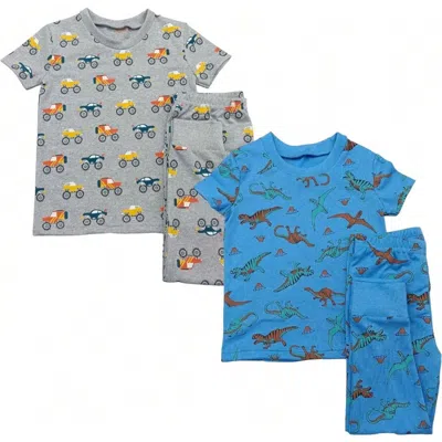 Kids' 2 Pack Boys' Shortsleeve Pajamas In Blue Dinosaurs/trucks