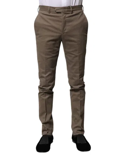 Brown Cotton Tapered Formal Dress Pants In Green