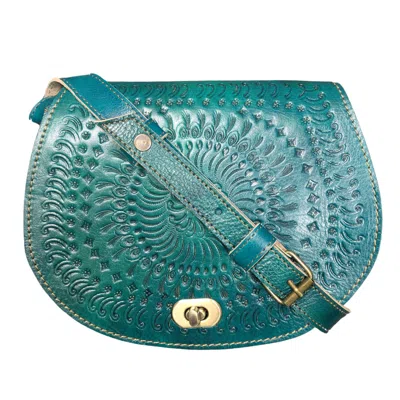 Men's Green / Blue The Temara Embossed Saddle Bag In Teal In Multi