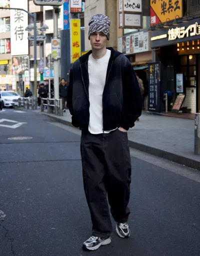 Waffle-knit Zip-up Sweatshirt In Black