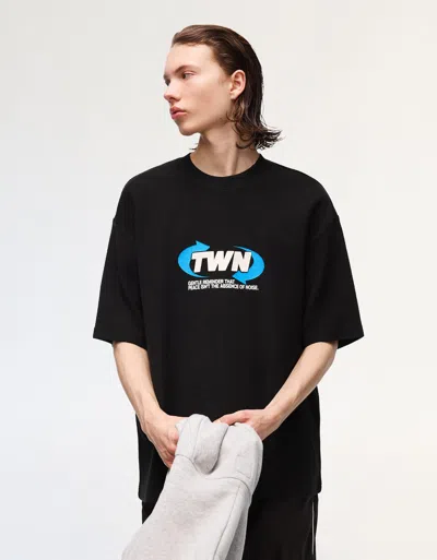 Printed Boxy Fit Short Sleeve T-shirt In Black