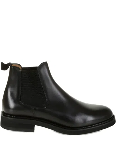 Elasticated-side Band Leather Boots In Black