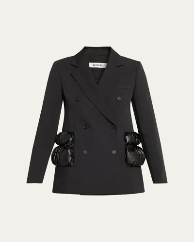 Puffer Pocket Double-breasted Blazer In Black