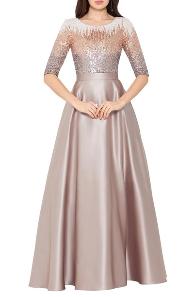 Quinn Embellished Sequin Ball Gown In Mocha In Neutral