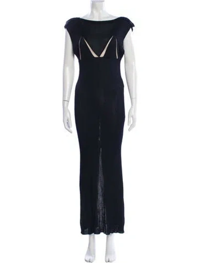 Pre-owned Bateau Neckline Long Dress In Blue