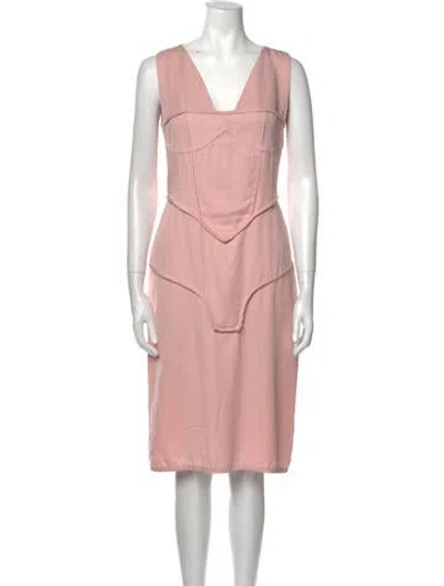Pre-owned V-neck Knee-length Dress In Pink