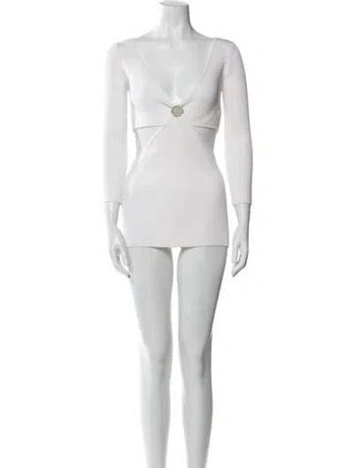 Pre-owned V-neck Mini Dress In White