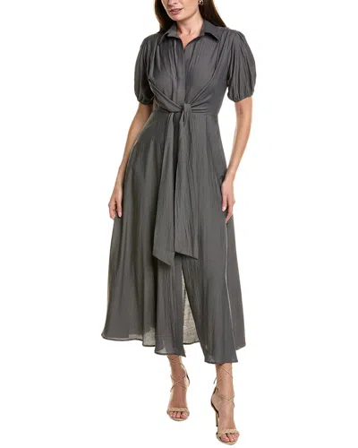 Tie Front Midi Shirtdress In Gray